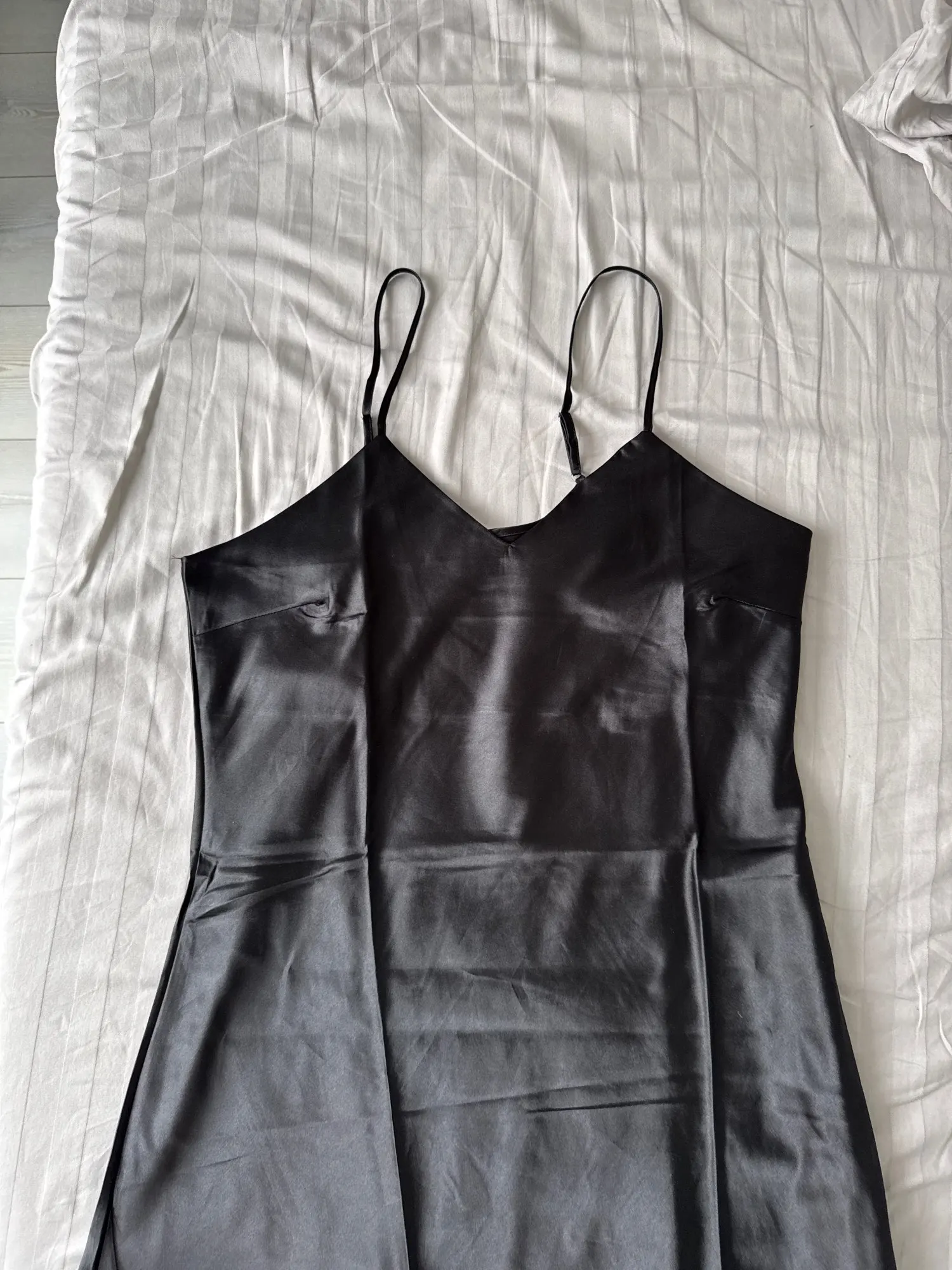 Det tidløse design med fine spaghetti-stropper og en diskret V-udskæring fremhæver dine feminine former på en elegant måde ✨. Silkenes bløde glans giver dig en luksuriøs følelse, ideel til en afslappende aften derhjemme eller et romantisk øjeblik 🌹.